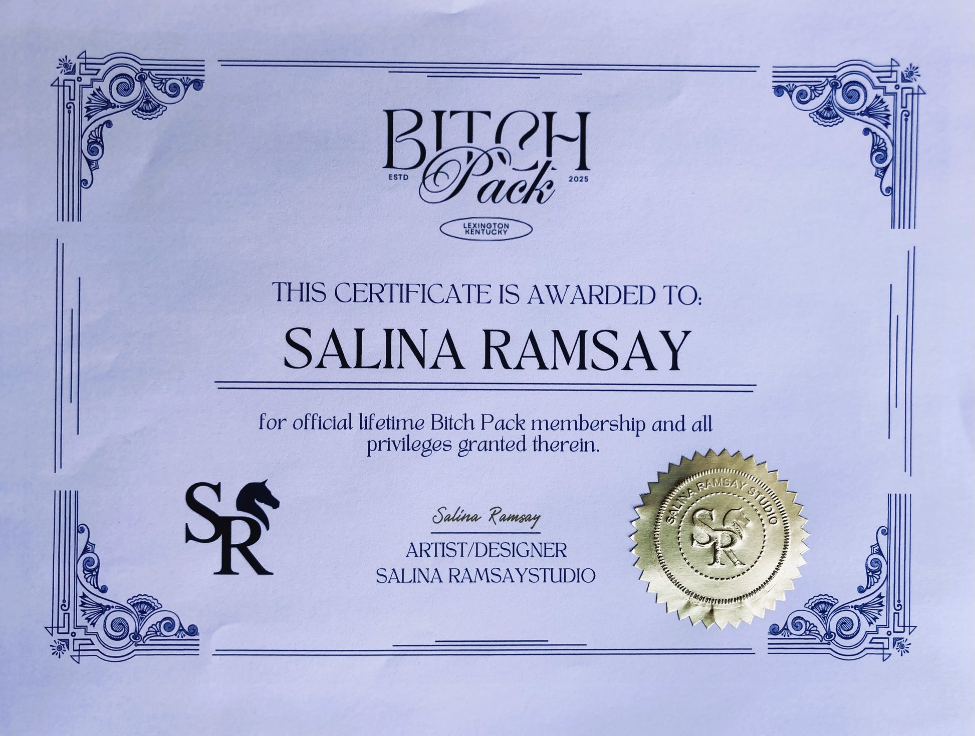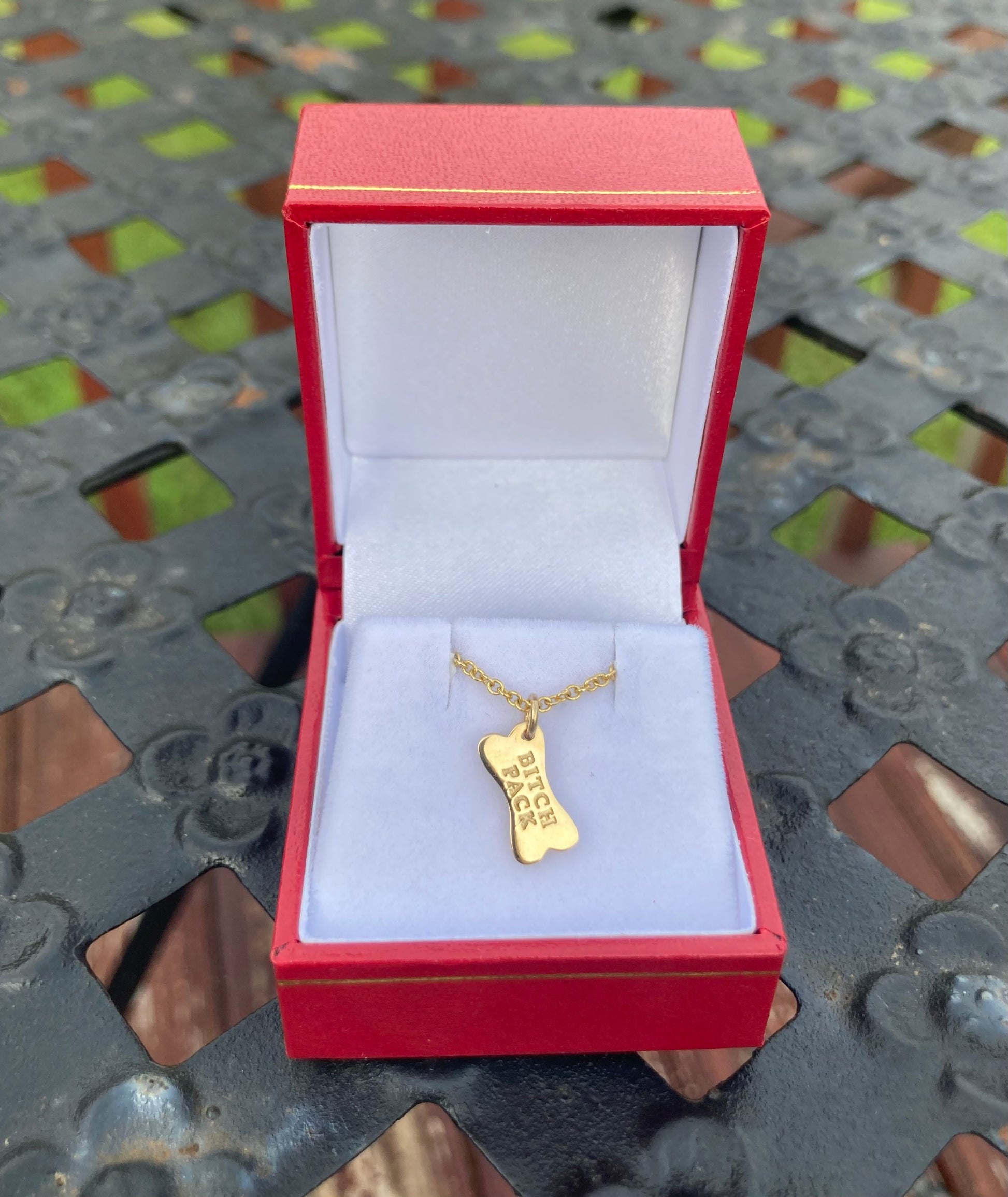 With your order of this hand crafted 14k gold pendant, you will receive your personalized welcome letter, official certificate of Bitch Pack Membership, Bitch Pack Manifesto, and Bitch Pack Official Terms.