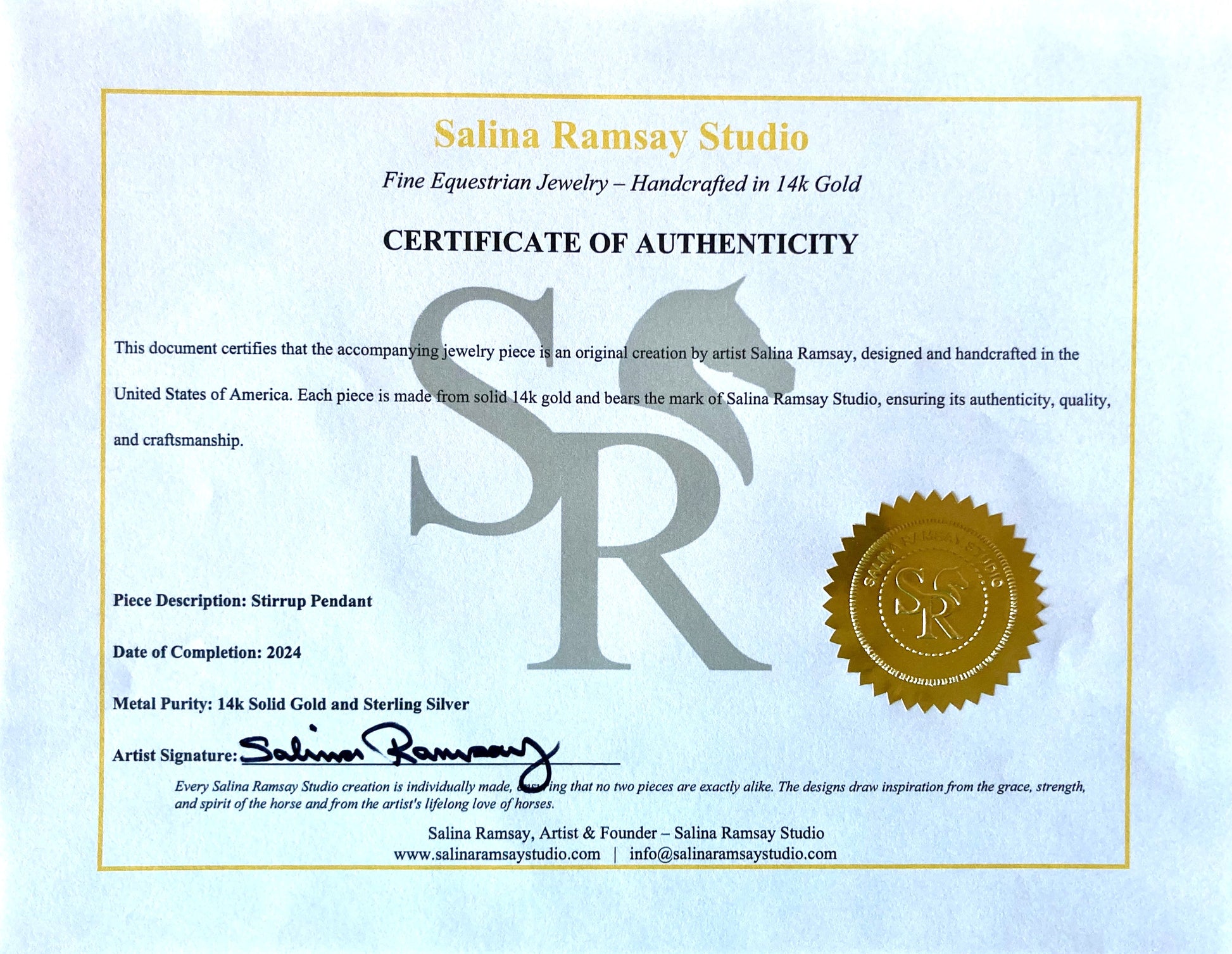 The Stirrup Pendant is about partnership. Every rider knows the feeling of slipping their foot into the stirrup, finding balance, and feeling that surge of freedom as horse and rider move as one.